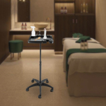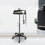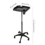 Побудований для вічності Високоякісний ABS, пластик, нейлон, PP, нержавіюча сталь і вишуканий процес лиття під тиском роблять цей продукт міцним і довговічним, зберігаючи його красивим і практичним навіть без частої заміни. Охайне зберігання Широка (40 x 40 см) і термостійка (200 °C) верхня частина з багатьма різними отворами, вбудованими слотами та кубом для зберігання забезпечує достатньо місця для зберігання перук, фенів, мисок для фарбування та затискачів, ножиць, шампунів та іншого предметів і таким чином створює чисте та охайне середовище, забезпечуючи легкий доступ. Ретельно розроблений Підняті краї ефективно запобігають падінню речей з лотка. П'ять безшумних універсальних коліс, на яких непросто заплутати бруд або волосся, дозволяють переміщати цей предмет куди завгодно з меншим шумом і уникати ризиків для безпеки. Основа у формі пентаграми забезпечує чудову стабільність без легкого перекидання, тому ви можете використовувати його з упевненістю. Регульована висота Ви можете регулювати висоту (28,54-43,31 дюйма), обертаючи ручку на виробі, щоб задовольнити різні потреби клієнтів із різним зростом. Простий монтаж Завдяки простій конструкції, повному комплекту аксесуарів і детальній схемі встановлення ви можете завершити установку та почати використовувати за короткий час.