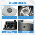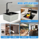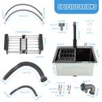 Тиха робота Звукоізоляційна прокладка в нижній частині може зменшити шум каналізаційних стоків і забезпечити вам більш тихе середовище. Легко встановлюється Для встановлення не потрібні гвинти та інші інструменти. Вам потрібно лише безпосередньо підключити різні компоненти, щоб завершити встановлення, і ви зможете насолоджуватися відчуттям досягнення від компонентів до готового продукту! Повні компоненти Окрім раковини, у наш пакет також входять такі аксесуари, як дозатор для мила, сушарка для посуду та змішувач, які вирішують проблему прибирання кухні одним рухом. Вибрані матеріали В основному він виготовлений з нержавіючої сталі SUS 304 і завдяки технології фарбування має хороші антикорозійні та антикорозійні властивості, стійкість до подряпин та інші властивості, досягаючи максимального навантаження близько 36 кг. Велика місткість Мийка (15 x 11 x 7,48 дюймів) вміщує багато каструль, мисок, тарілок тощо, тому ви можете легко мити різноманітне кухонне начиння, фрукти, овочі тощо. Поворотний кран Змішувач можна повернути на 180°, щоб забезпечити холодною або гарячою водою більшу площу. Стільникові фільтри та керамічні сердечники клапанів можуть дати вам краще відчуття використання та продовжити термін їх служби. Очистити в найкоротші терміни Завдяки конструкції R-angle, антиконденсатному покриттю та нанопокриттю можна швидко видалити жир і бруд. Зливний фільтр-дезодорант може вловлювати залишки їжі та бруд для легкого поводження та запобігати засміченню зливних труб. Великий дренажний отвір Зливний патрубок діаметром 3,54 дюйма може ефективно відводити стічні води за короткий час і не схильний до засмічення. Заявка Ідеальний вибір для таких місць, як гаражі, пральні, підвали, внутрішні дворики, бари, кухні, ванні кімнати, ферми, подвір’я, комерційні ресторани тощо. Дуже підходить для ручного чищення їжі, фруктів, овочів тощо. Технічні характеристики Основний матеріал: Харчова нержавіюча сталь 304 Колір: Чорний. Вага: Приблизно 60 кг/132,28 фунтів Розмір раковини(зовні): 45*40*20 см/17,72*15,75*7,87 дюймів Розмір раковини(всередині): 41*30,5*20 см/16,14*12,01*7,87 дюймів Вага нетто: 6,3 кг/13,89 фунтів Вміст пакету 1 * раковина 1* Комплект для зливу 1 * спускна труба 1*Кран для води 2*Кутовий клапан 2 * труба 1 * Друшляк 1 * Дозатор мила Всі аксесуари для монтажу Технічні характеристики | Основний матеріал | Харчова нержавіюча сталь 304 | Колір | Чорний. | | Вага | Приблизно 60 кг/132,28 фунтів | Розмір раковини(Зовні) | 45*40*20 см/17,72*15,75*7,87 дюймів | | Розмір раковини(всередині) | 41*30,5*20 см/16,14*12,01*7,87 дюймів | Вага нетто | 6,3 кг/13,89 фунтів | Примітка 1. Будь ласка, уважно прочитайте інструкцію та дотримуйтеся запобіжних заходів, щоб отримати кращий досвід. 2. На поверхні виробу можуть бути подряпини, що є нормальним явищем і не впливає на його використання. 3. Щоб забезпечити термін служби та якість виробу, використовуйте нейтральний миючий засіб для очищення. 4. Будь ласка, дозвольте невелику різницю в кольорі, спричинену світлом зйомки, і помилку 1-3 см через ручне вимірювання. Перед замовленням переконайтеся, що ви не проти. |