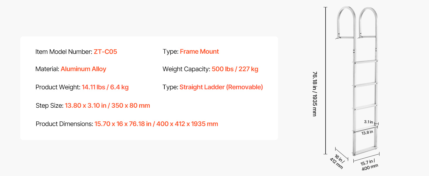 Высокая грузоподъемность: наша причальная лестница изготовлена из утолщенного алюминиевого сплава 6063, а поверхность подвергается специальной пескоструйной обработке, чтобы обеспечить высокую грузоподъемность, устойчивость к царапинам и коррозии. Грузоподъемность может достигать 500 фунтов (около 227 кг), устойчива и не деформируется.