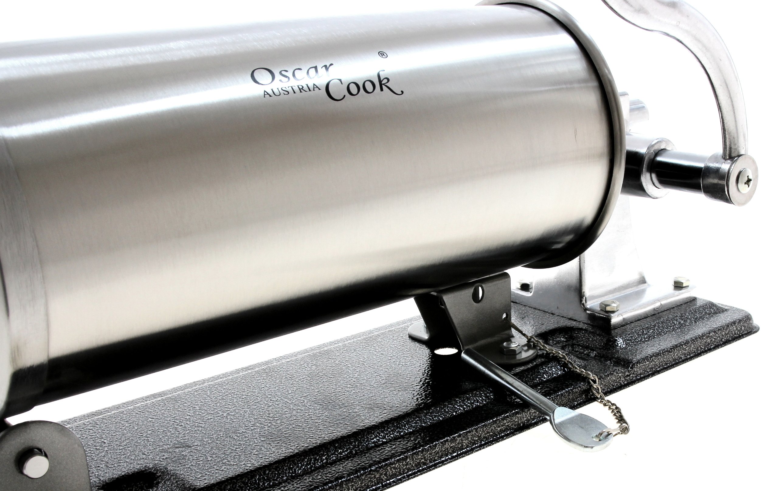 Виготовлена з високоякісної нержавіючої сталі ручна начинка місткістю 3 кг м’яса є ідеальним пристроєм для наповнення оболонок (шкембелів) ковбасним виробництвом.